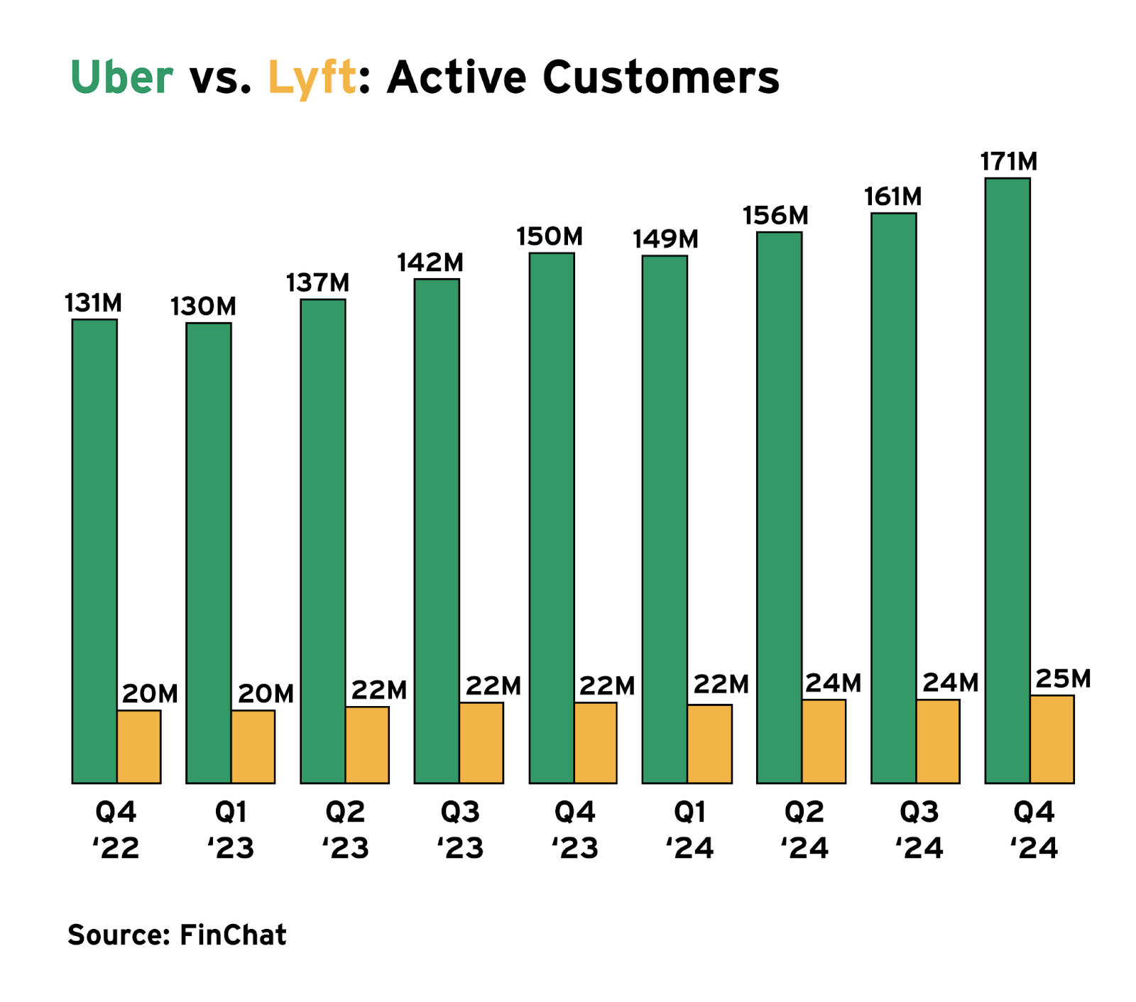 Uber has added more monthly active users in the past two years than Lyft has in total.