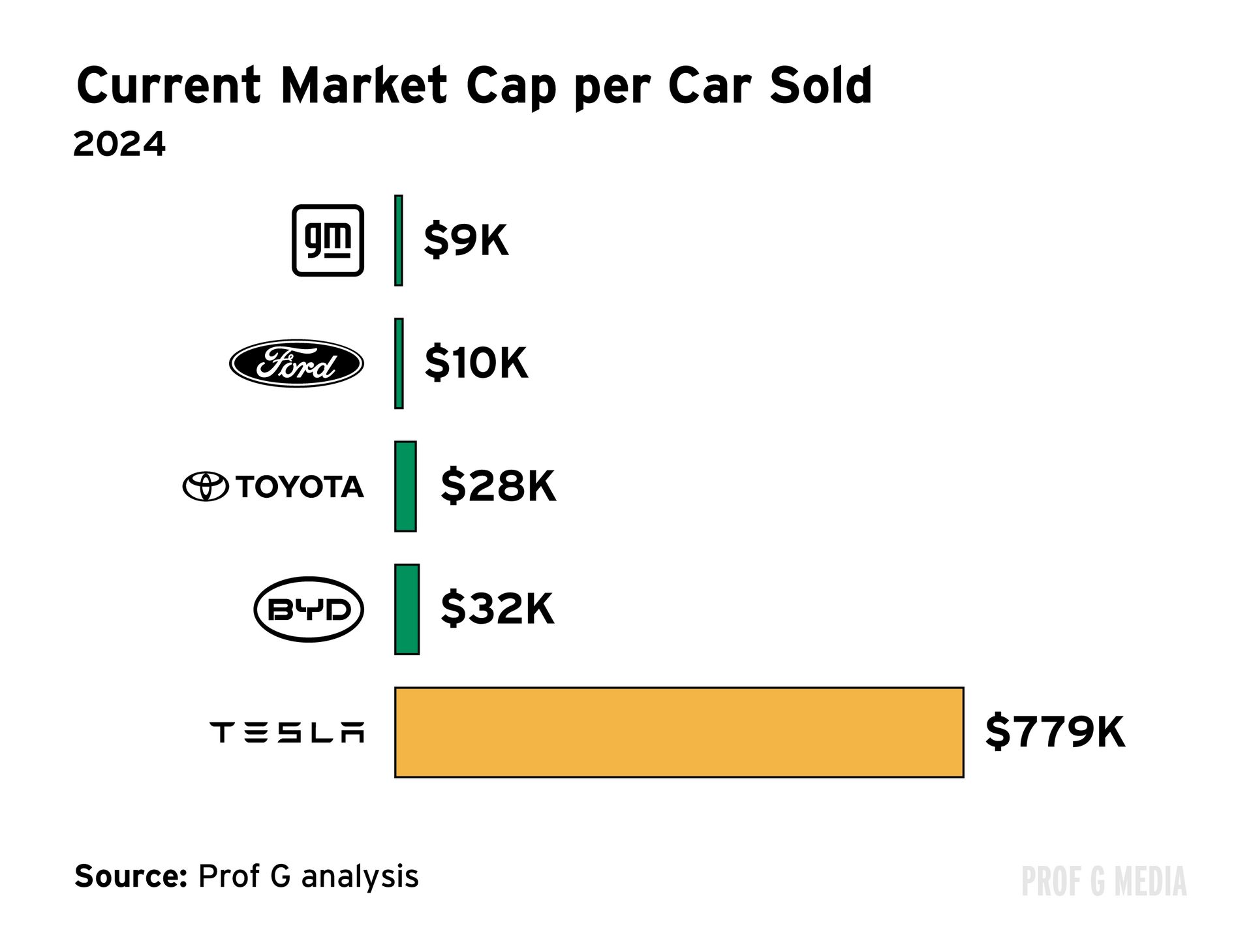 To put Tesla’s valuation in perspective: If it were to lose 80% of its current enterprise value, it would STILL be worth over $100 billion more than Ford and GM.