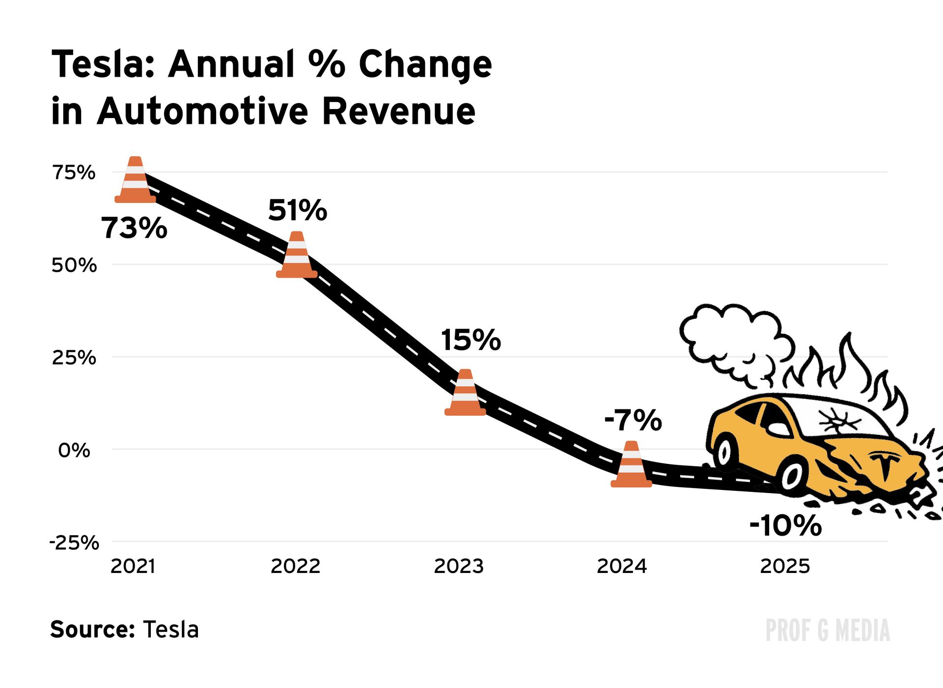 Automotive revenues declined 10% year over year, and Tesla, which used to have some of the highest margins in the auto industry, now has pre-tax profit margins that are about 6%, less than half of Toyota's.